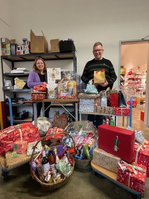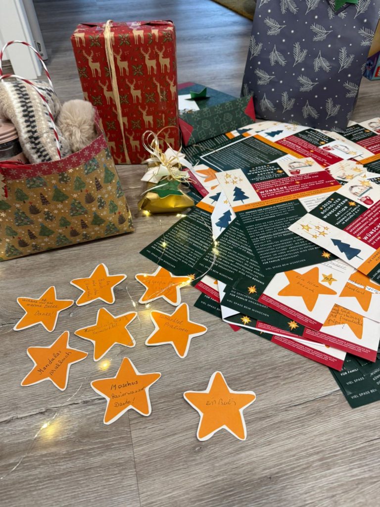 Überhaupt war die Unterstützung von Firmen großartig: Die sieben Sterne-Partner Edeka Görkes, Stempel Meyer, Spielebude, Makerspace, Take me Home, Huckleberrys und Shoeby hatten ihre Kundinnen und Kunden als Wunscherfüller angesprochen und gewinnen können. Jürgen Schroer von Stempel Meyer berichtete, dass ein 13-jähriger Junge vor Ort spontan auf all seine Weihnachtsgeschenke verzichtete. Stattdessen nahm er gemeinsam mit seiner Mutter gleich acht Wunschsterne mit, besorgte passende Geschenke, verpackte diese liebevoll mit Plätzchen und gab sie pünktlich zur Auslieferung dort wieder ab. „Stempel Meyer alleine hat über 70 Geschenke, teils auch gespendet von den eigenen Beschäftigten, eingesammelt, weil sie ihre Kundschaft sogar noch über ihren WhatsApp-Kanal auf die Aktion aufmerksam gemacht haben“, erzählt Annette Hünting-Deckers, 2. Vorsitzende des Bündnisses.