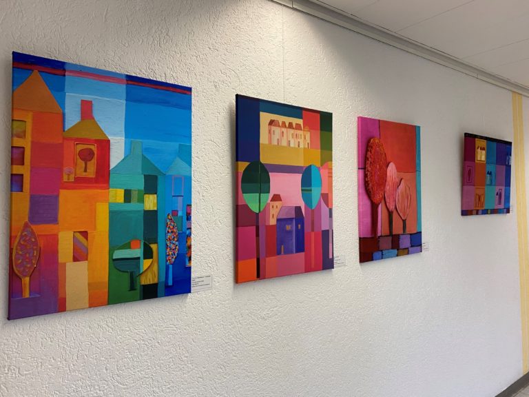 Die ausgestellten Leinwände ihrer Acrylmalerei vermitteln dem Betrachter eine fröhliche und angenehme Stimmung, aber auch Entspannung. „Für mich ist es sogar ein Gefühl des Glücks“, schmunzelt die Künstlerin, „wenn mir die Harmonie der Farben durch das Vermischen vieler Farbtöne gelingt.“ Ein Gefühl, das beim Betrachten ihrer Bilder überspringt.