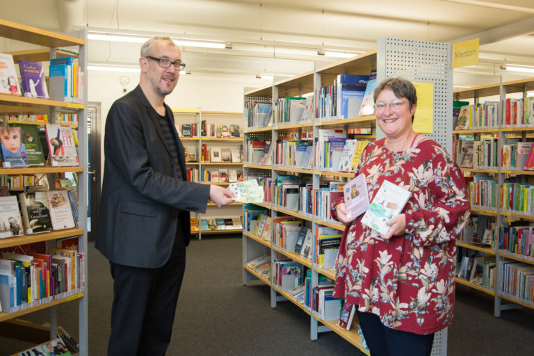 Moers. (pst) Mit dem Rad entlang des Niederrheins, ein Ausflug durch das Ruhrgebiet und die besten Tipps dazu zusammengefasst: Schon bald gibt es noch mehr Wander- und Regionalreiseführer in der Bibliothek Moers. Von dem Spendengeld über 300 Euro der Thalia Buchhandlung kauft die Bibliothek neue Bücher aus diesem Genre. Joachim Riegel, Filialleiter von Thalia Moers, hat das Geld am Donnerstag, 19. August, an Bibliotheksleiterin Ursula Wiltsch überreicht (Foto: pst). „Der Bedarf an NRW- und Radreiseführern ist unter anderem durch Corona stark gestiegen“, erklärt Ursula Wiltsch. Auch beim Verkauf der Bücher in seiner Filiale bemerkt Joachim Riegel die erhöhte Nachfrage dieses Genres. „Die Menschen ergreifen vermehrt die Initiative, die eigene Region kennenzulernen. Die Regionalreiseführer zeigen, dass man sich auch hier im Umkreis eine schöne Zeit machen kann.“