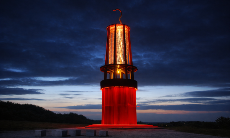 Moers. (pst) Hoch über Moers thront auf der Halde Rheinpreußen das größte Montankunstwerk weltweit: das Geleucht von Otto Piene (Foto: pst). Bei einer Wanderung am Sonntag, 1. Februar, um 18.30 Uhr erfahren die Teilnehmenden Wissenswertes über die Hintergründe und zur Industriegeschichte der Region. Treffpunkt ist am Clubhaus der Freien Schwimmer, Römerstraße 790. Das begehbare Kunstobjekt steht für die industrielle Vergangenheit des Ruhrgebiets und des Niederrheins. Die überdimensionale Grubenlampe ist auf der Halde Rheinpreußen in genau 103,60 Meter Höhe zu finden. Für die rund zweistündige und 3,5 Kilometer lange Tour sind eine gute Kondition und festes Schuhwerk nötig.