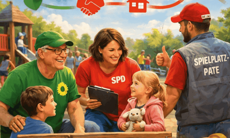Die Fraktionen von Bündnis 90/Die Grünen, SPD und Die Linke beantragen für die Sitzung des Ausschusses für Tiefbau, Grünflächen und Umwelt am 02.03.2026 die Aufnahme des Tagesordnungspunktes „Spielplatzpatenschaften einführen – Ehrenamtliche für lebendige Spielräume gewinnen“. Ziel ist es, ein stadtweites Konzept für ehrenamtliche Spielplatzpatenschaften in Neukirchen-Vluyn auf den Weg zu bringen und damit die Qualität und Lebendigkeit der städtischen Spielplätze nachhaltig zu stärken.