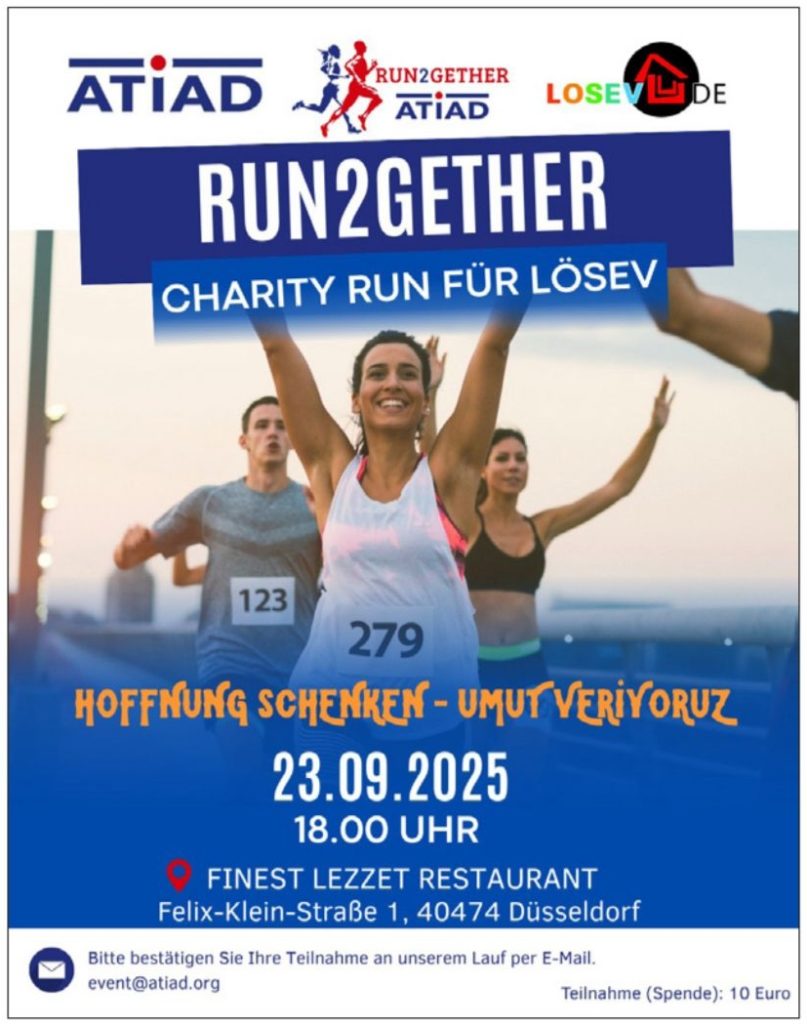Düsseldorf. Die Europäische Union Türkischer Unternehmer und Industrieller (ATIAD) und die LÖSEV Stiftung gGmbH organisieren am Dienstag, 23. September 2025, eine besondere Benefizveranstaltung zugunsten krebskranker Kinder. Unter dem Motto „ATIAD Run2gether: İyilik İçin Koşuyoruz – Wir laufen für das Gute“ findet in Düsseldorf ein Spendenlauf statt, dessen Erlöse ohne Abzüge direkt an die LÖSEV Stiftung fließen.