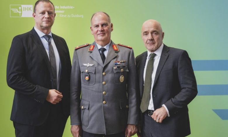 Auftakt dazu war die IHK-Veranstaltung „Gesamtverteidigung und Wirtschaft“, bei der Brigadegeneral Hans-Dieter Müller, Kommandeur des Landeskommando Nordrhein-Westfalen,