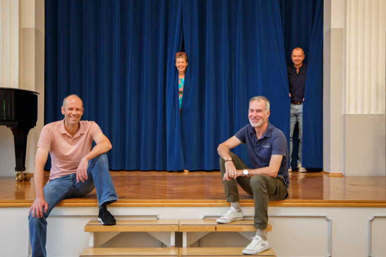 Bildzeile: Florian Besten, Ulrike Schweinfurth, Ralf auf der Heiden und Georg Kresimon von der Moerser Musikschule freuen sich auf insgesamt acht Konzerte (v. l.). (Foto: pst)