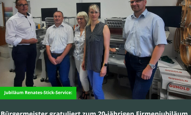 Bürgermeister Prof. Dr. Christoph Landscheidt und Wirtschaftsförderer Andreas Iland zeigen sich sichtlich beeindruckt von der Erfolgsgeschichte von Renates-Stick-Service und gratulieren dem Ehepaar Kleinbongardt herzlich zu ihrem 20-jährigen Jubiläum: „Ich gratuliere Ihnen Beiden, Renate und Peter Kleinbongardt, herzlich zu Ihrer gelungenen Unternehmensentwicklung mit Renates-Stick-Service. Als Bürgermeister der Stadt freue ich mich natürlich besonders über Erfolgsgeschichten, die in Kamp-Lintfort entstehen und langfristig bestehen können“, so Landscheidt. „Unser Ziel ist es, noch viele weitere ähnliche Erfolgsgeschichten in Kamp-Lintfort beginnen zu lassen“, ergänzt Andreas Iland.