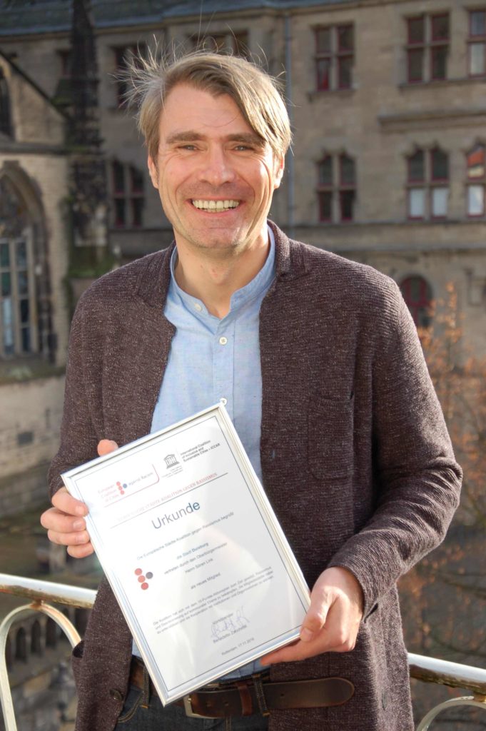 Marijo Terzic unterschrieb in Vertretung für den Oberbürgermeister die Beitrittserklärung: „Mit dem Beitritt in die UNESCO-Städtekoalition gegen Rassismus wird die wichtige Arbeit über die Stadtgrenze hinausgetragen. Kooperationen mit anderen Städten werden ausgebaut beziehungsweise neu gegründet.“
