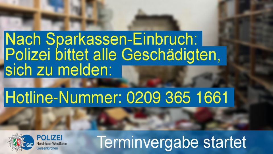 Sparkassen-Einbruch in Gelsenkirchen: Polizei lädt über 3.000 geschädigte Schließfach-Besitzer zur Vernehmung ein