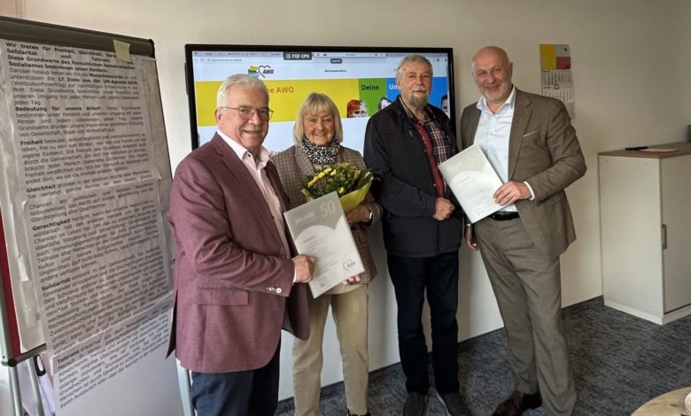 Moers. Ein ganz besonderes Jubiläum feierten nun Erika und Dr. Wilfried Scholten. Seit über 50 Jahren ist das Ehepaar Mitglied im AWO Ortsverein Moers. Das wurde nun in der Geschäftsstelle gebührend gefeiert. AWO Präsident Ibrahim Yetim und Jochen Gottke, Vorstandsvorsitzender im Kreisverband Wesel, hießen die beiden Jubilar*innen bei Kaffee und Kuchen herzlich willkommen.