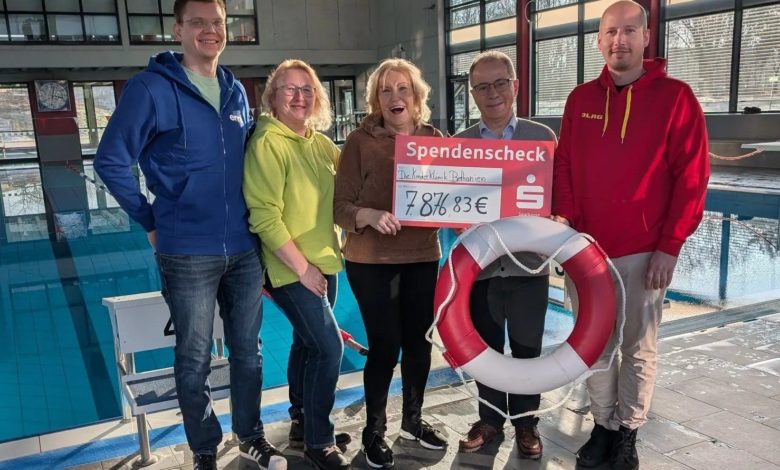 Gemeinsam mit Sven Kattelans und Klaudia Bours (DLRG Rheinkamp) sowie Monika Huf (Freie Schwimmer Rheinkamp) überreichte Beckerle den symbolischen Scheck nun an Dr. Selcan Gündüz, Chefarzt der Bethanien Kinderklinik. Hier wird die Spende in verschiedene Projekte fließen – unter anderem die Klinikclowns, die den jungen Patientinnen und Patienten regelmäßig Freude und Ablenkung im Klinikalltag bringen, und die medizinische Versorgung von Kindern aus Krisen- und Kriegsgebieten.