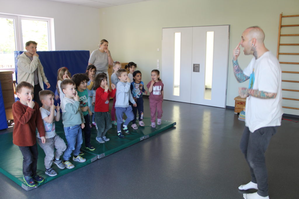 Nicht nur die Kinder sind von dem mitreißenden Projekt begeistert. Auch Kitaleiterin Sabrina Wiatrek findet es klasse: „Es macht einfach großen Spaß. Bewegung ist ja auch unser Schwerpunkt in der Kita. Deshalb ist es wichtig, die Kinder dafür zu gewinnen. Mit Musik geht das noch besser.“