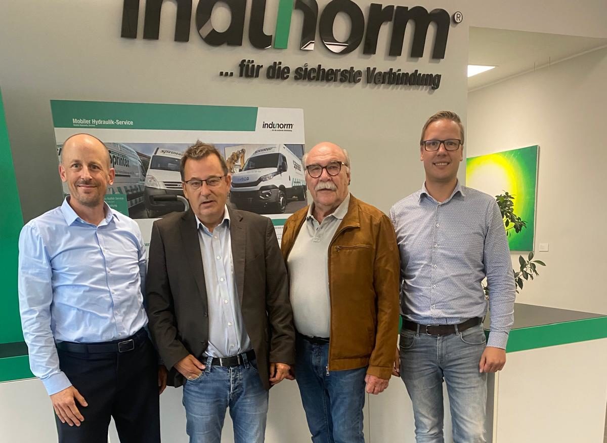 Bildzeile: Kinder und Erzieherinnen des Familienzentrums Leibnizstraße mit Bürgermeister Harald Lenßen