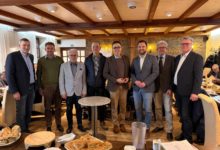 Fotos: (Nina Meise, Landesgartenschau Kamp-Lintfort 2020 GmbH) (1): Prof. Dr. Christoph Landscheidt (2. v.l.) und Andreas Iland (4. v.l.) begrüßen Silke Schulze Dinkelborg und ihre Familie auf der Landesgartenschau.