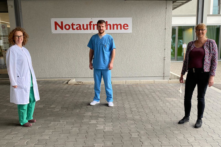 Matthias Hoffmann wurde nach seinem ersten Praktikum im Rahmen seiner Notfallsanitäter-Ausbildung im St. Irmgardis-Krankenhaus Süchteln von Chefärztin Dr. Jessica Görgens (l.) und Pflegedirektorin Britta Gruhn verabschiedet.