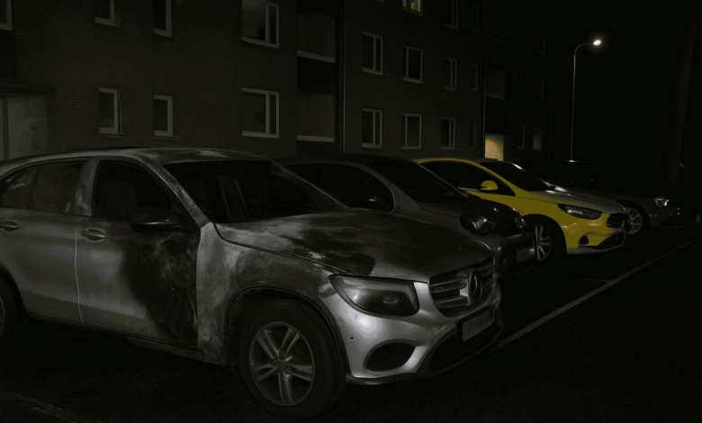 Nach ersten Erkenntnissen ging das Feuer von einem grauen Mercedes aus, der in einer Reihe von Parkbuchten vor einem Mehrfamilienhaus abgestellt war. Das Fahrzeug stand beim Eintreffen der Einsatzkräfte in Vollbrand und musste von der Feuerwehr gelöscht werden.