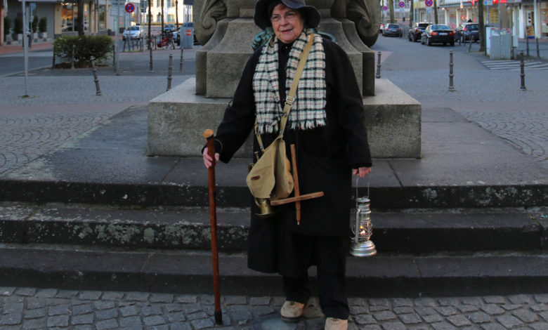 Moers. (pst) Die Nachtwächterführung startet die Reihe der Gästeführungen in November. Sie findet am Freitag, 4. November, um 19 Uhr statt. Treffpunkt ist am Denkmal von König Friedrich I. auf dem Neumarkt. Gästeführerin Erika Ollefs (Foto: pst) erzählt in typischer Gewandung Wissenswertes aus der Zeit, als Moers noch eine befestigte Stadt war. Dieser besondere Berufsstand musste früher nicht nur die Tore der Stadt öffnen und schließen, sondern auch nachts in den Gassen nach dem Rechten sehen.