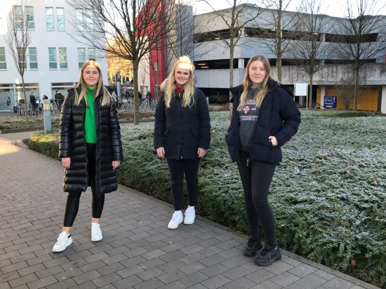 BU: (v.l.n.r.) Julia Ursula Blömer, Greta Theresa Viktoria Hellenthal und Emma Jonat freuen sich auf Ihre Zeit am Moerser St. Josef Krankenhaus.