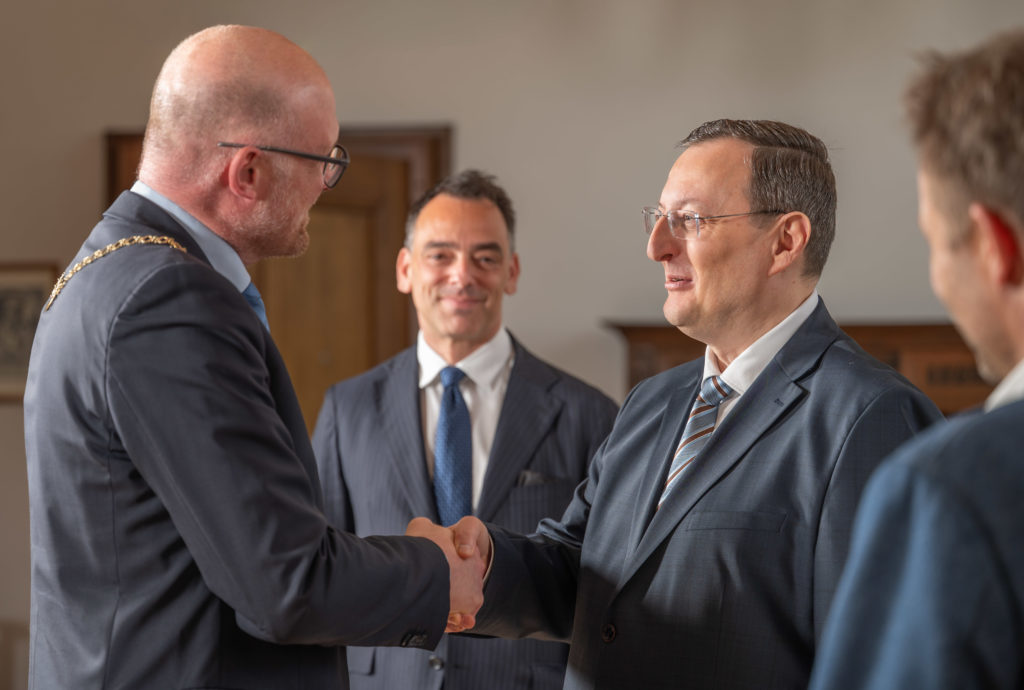 Gökhan Turan hat eine ganz persönliche Verbindung zu Duisburg – die fünfte und sechste Klasse absolvierte er am Krupp-Gymnasium in Rheinhausen. Bereits vor dem Besuch im Rathaus hatte der Botschafter seine ehemalige Schule besucht, um sich mit Schülerinnen und Schülern vor Ort auszutauschen.