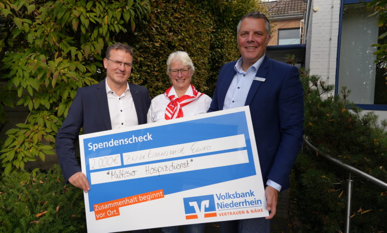 Alpen Die Solidarstiftung der Volksbank Niederrhein hat mit einer Spende von zweitausend Euro den Malteser Hospizdienst in Sonsbeck unterstützt. „Die Arbeit des Malteser Hospizdienstes für unsere Region ist außerordentlich wertvoll und gibt Menschen in der schwierigsten Phase ihres Lebens Halt und Sicherheit sowie Wärme und Geborgenheit“, betont Guido Lohmann, Vorstandsvorsitzender der Volksbank. Voller Respekt vor dem ehrenamtlichen Engagement der Mitwirkenden unterstützen wir aus den Erträgen unserer Solidarstiftung sehr gerne die Arbeit vor Ort.