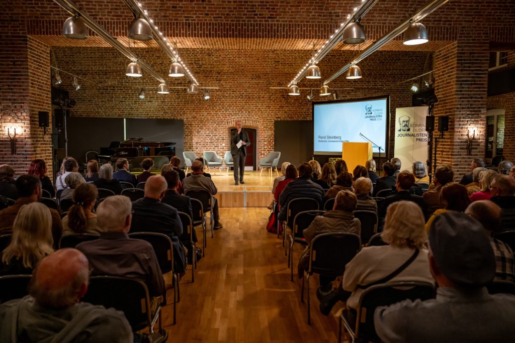 „Die Entscheidung war denkbar knapp“, sagte Sigrid Baum. Denn die drei prämierten Beiträge waren in den Jury-Bewertungen jeweils nur einen Punkt voneinander entfernt. „Generell hatten wir in diesem Jahr viele sehr starke Bewerbungen – und auch so viele wie bisher noch nie“, so Sigrid Baum weiter. 51 Nachwuchsjournalisten aus ganz Deutschland hatten sich mit ihren Arbeiten beworben. Unter den eingereichten Beiträgen waren Zeitungsartikel, TV- und Radiobeiträge, Podcasts und auch journalistische Social-Media-Projekte. „Wir freuen uns sehr über die große Resonanz“, betont die Jury-Vorsitzende. „Sie zeigt, dass der Konrad-Duden-Journalistenpreis sich zu einer bekannten und gefragten Auszeichnung entwickelt hat.“